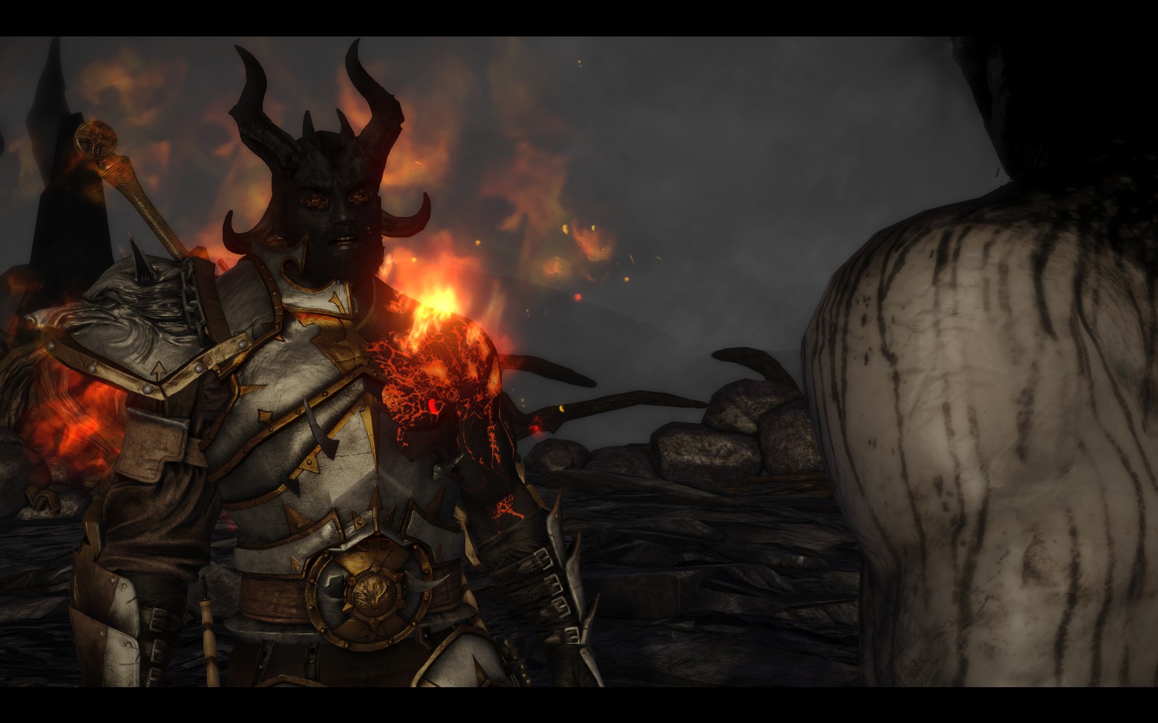 At various points throughout the game you’re presented with a choice to either side with your inner demon’s advice or try to hold on to your dwindling humanity, the decision essentially boiling down to a black and white morality choice. Choose to side with the demon more and you’ll be rewarded with several things, starting with physical changes. Your skin will change to grey, and then near black, your voice will take on a demonic tinge, horns will sprout from your skull and half your chest will end up on fire, which presumably makes taking a bath quite challenging. This gradual transformation comes with a greater control of your fire-based abilities and a bump in your offensive capabilities, as well as just making you look like a badass. Trading away your humanity does have some draw-backs, though; your horns stop you from wearing a helmet and your personal chest heater burns away a chunk of whatever torso armor you’re. Both this and the lack of a helmet decrease your defense, naturally. As a creature of fire you’ll also become more susceptible to ice-based attacks and magic. Furthermore not everyone will appreciate your new-found appearance or the fact that you’re being influenced by a strange being, although for the most part everyone seems strangely calm about the whole thing. You’d think they would be a bit more surprised when you return from a mission with numerous horns sticking of your skull, but nope, they all just carry on as per normal. That’s some crap writing, there.