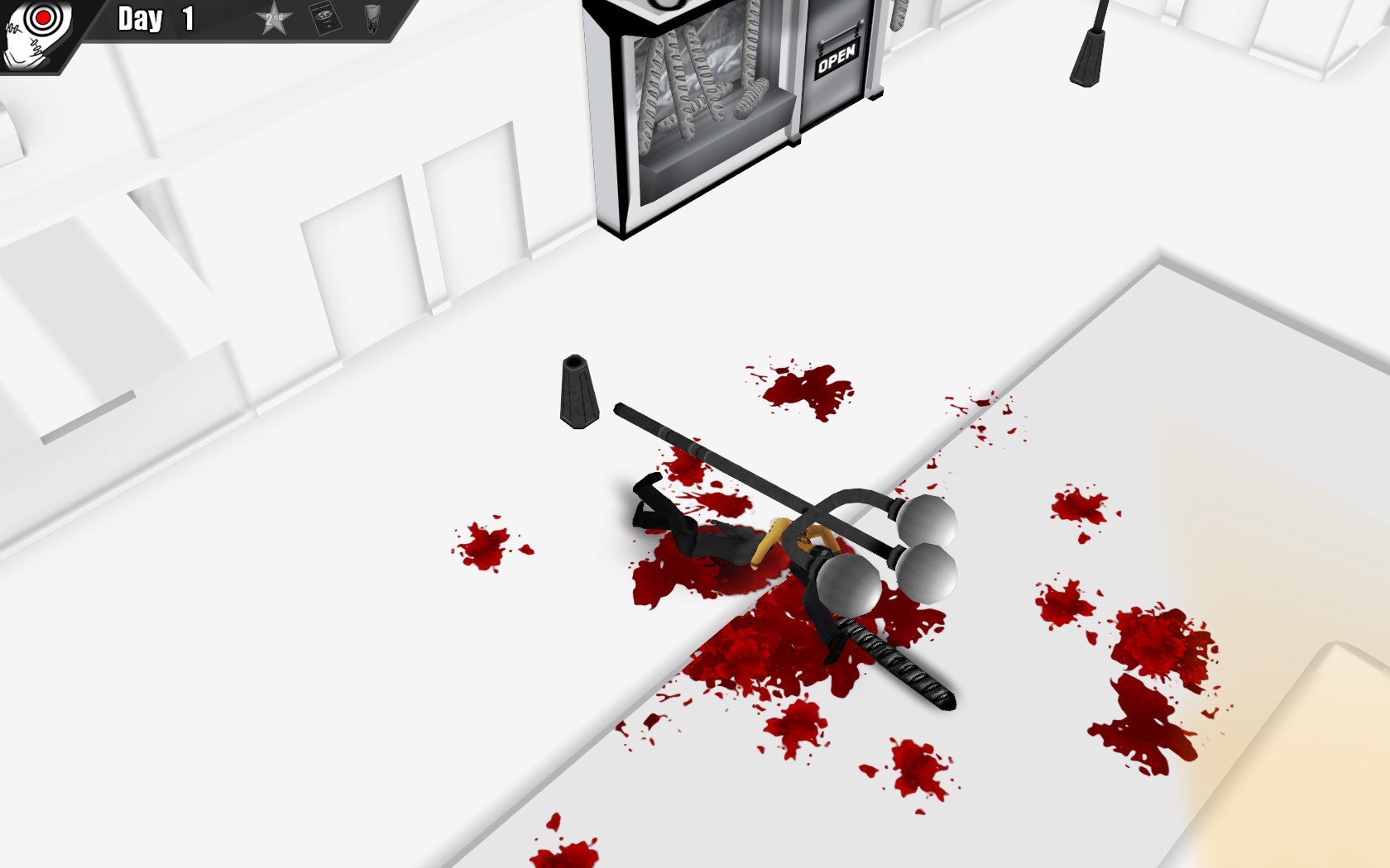 While the global media would probably love to describe it as a brutal murder simulator, Kill the Bad Guy is ultimately a puzzle game, one that’s hiding under a dark disguise and armed with a black sense of humour that manages to miss as often as it hits. Whomever was in charge of writing the brief biographies of your victims attempts to weave in a black sense of humour, but it comes across as weak, especially when paired up with descriptions of real-life killers. Your victim trundles through the level, and its your goal to figure out how to kill him while making it look like an accident, an element of the game that quickly becomes absurd as most of the intended methods of murder don’t remotely resemble an accident. The game grants you a couple of “days” to perform the kill, essentially meaning you can use the first day and the pause button to investigate the objects in the level, sabotage anything you think you might need and watch the victim’s chosen path, which he’ll repeat in the next day. You simply need to figure out, using the tools provided, what the intended method of death is and how to carefully herd the target into the killing area, which becomes far more important later as you’re not allowed to execute the hit in view of cameras or civilians. And for bonus points you can also perform the secondary objective, which is a specific method of death, grab the hidden passport and snatch up the tooth that flies from the victim’s mouth upon being squashed/sliced/hacked/run over.