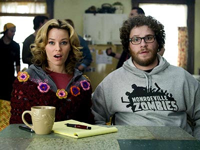 But what works is the chemistry between Zack and Miri, played respectively by Seth Rogen and Elizabeth Banks. Rogen may often come across as the same character in every film, but he’s a master of playing the chilled everyday man, making himself appear completely natural on camera. Likewise Elizabeth Banks works well in her role. The back and forth banter between these two is delivered perfectly. They are completely at ease with each other, and bicker just like real best friends do. This then transfers into the romance. Despite the absurdity of it all, it’s a romance that works. You want these two odd-ball, relaxed people to figure their shit out and get together.