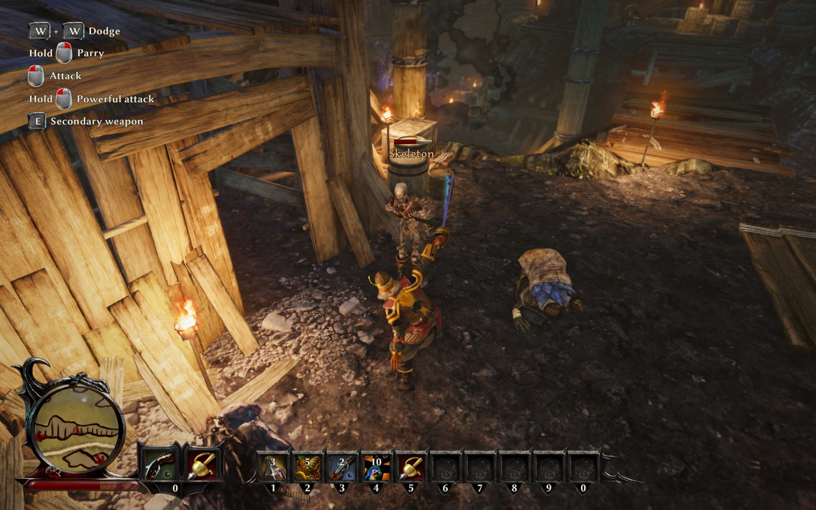 Combat has been improved a tad since Risen 2’s frankly bloody awful offering. As before tapping the left mouse button initiates a swing of the sword that then leads into a basic three-hit combo, but timing your presses correctly results in extra damage and better speed, while screwing up obviously does the opposite. The right mouse button is used to block attacks, and eventually riposte as well. Pistols can be mapped to your free left hand in order to unleash a quick shot to the face, and this time around there’s no horribly lengthy recharge times dictating their use. That’s not to say you can spam pistol attacks, though, as the animation for using them is relatively slow and can leave you vulnerable. The biggest and best addition is being able to dodge by double-tapping any direction, giving combat a far nicer feeling and making dealing with multiple opponents easier. The dodge can be spammed to avoid any and all damage, even if you’re rolling into a wall, but it’s an improvement.