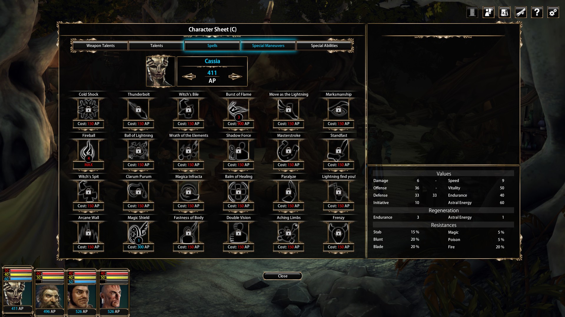There’s a bounty of things to tinker with when it comes to levelling up characters and playing with stats, aided by plenty of lovely numbers representing just about every aspect of your heroes. Action Points can be spent on buying and improving basic weapon skills, spells, a variety of special abilities and more. A nice touch is that a slider under each main weapon skill can be adjusted toward either offense or defense. You can improve standard stuff like health, Astral Energy for casting spells and endurance, plus bump up skill with armor, dual wielding and dodging attacks, and heaps more to boot, such as getting in a free strike on passing foes. It’s an impressive roster of stuff to play with, and incredibly daunting at first. Take heed and really consider the path you want each of your primary characters to take as a lack of planning early on can really hurt you due to the sheer amount of choice, especially since there’s a good bit of freedom with Cassia, who can learn spells, fire arrows and tackle enemies in mellee. This is of course all on top of decking our your characters with armor and weapons earned after battles, with bonus gear awarded for opening chests and killing messengers.