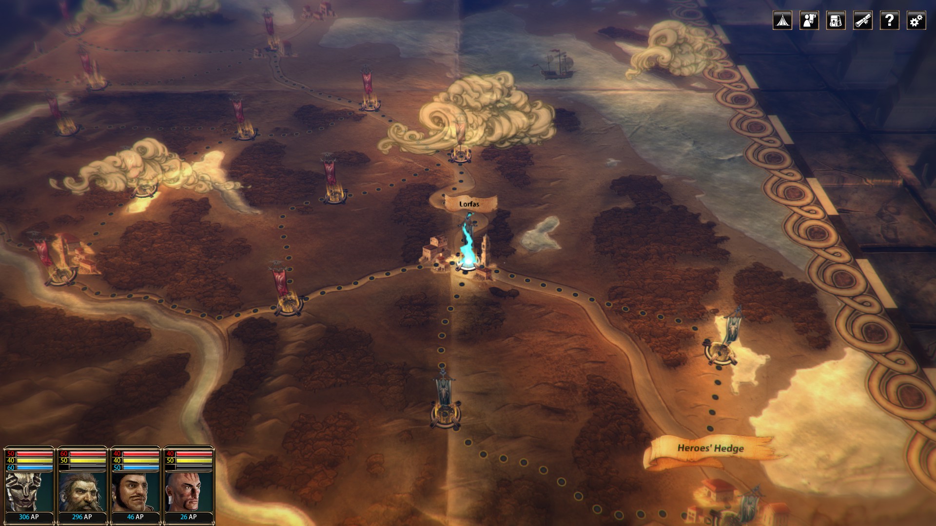 Between battles you’re presented with a world map where you choose which objective to chase next, conquering towns, mines and assorted other locations as you go. Each location tends to offer things like upgrades to your company of mercenaries who can be taken along on certain battles. After three “turns” the enemy will attempt to retake one of the areas you’ve captured, and during these battles you can only select members of your mercenary company, unless any of your four “heroes” happen to be stationed in the area. You’ll also get to place down defensive items that can help repel the attackers, which brings a minor extra element of thought to the combat. There’s not much to say here past this, which in a sense says quite a bit. Moving around the map is an interesting addition, but there’s not enough done with it to make it anything but vaguely interesting. You move from place to place with little thought really needed. Between fights you can chill out at either your camp or any of the towns you’ve captured, giving you the option to purchase new equipment from the local merchants and get potions brewed.
