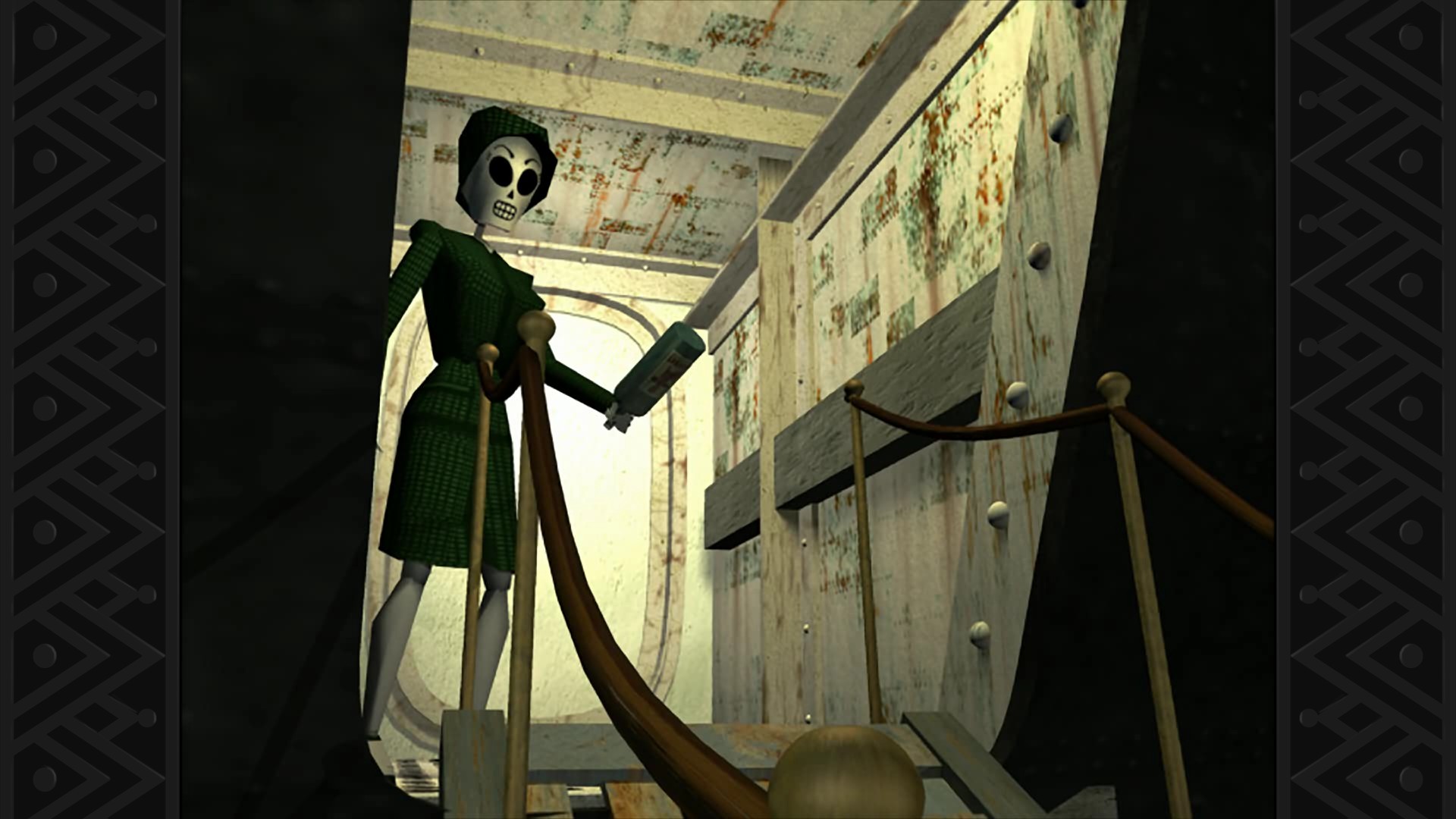 So, what new things have made it into this remaster? Well, the best addition is easily the inclusion of a point and click interface to supplement the original tank-like keyboard and mouse controls, which incidentally have been improved to make them easier to use, especially with a controller. This new point and click system slots so neatly into the game I actually had to double-check the Wikipedia to confirm that there was no point and click system to begin with and that my mind wasn’t simply playing tricks. Sadly, however, the clumsy inventory system didn’t get an update so you still have to go to a different screen and flick through each item individually. Meanwhile the resolution has been bumped up to make the visuals a tad sharper, though it can’t hide the age of the game as you can see in the screenshots. Some new lighting has been added, and while the effect is marginal it’s still a welcome chance, and the resolution of the characters has been upgraded to make them look sharper. It’s a testament to the game that while it’s ugly on a technical level the art-style is still very strong and interesting, mixing Mexican art and an almost art-deco. Meanwhile the score has been completely re-recorded using an entire symphony and is lovely to listen to, perfectly complimenting every scene, plus there’s now a developer commentary track that you can listen to while playing the game along with an image gallery and some other goodies.
