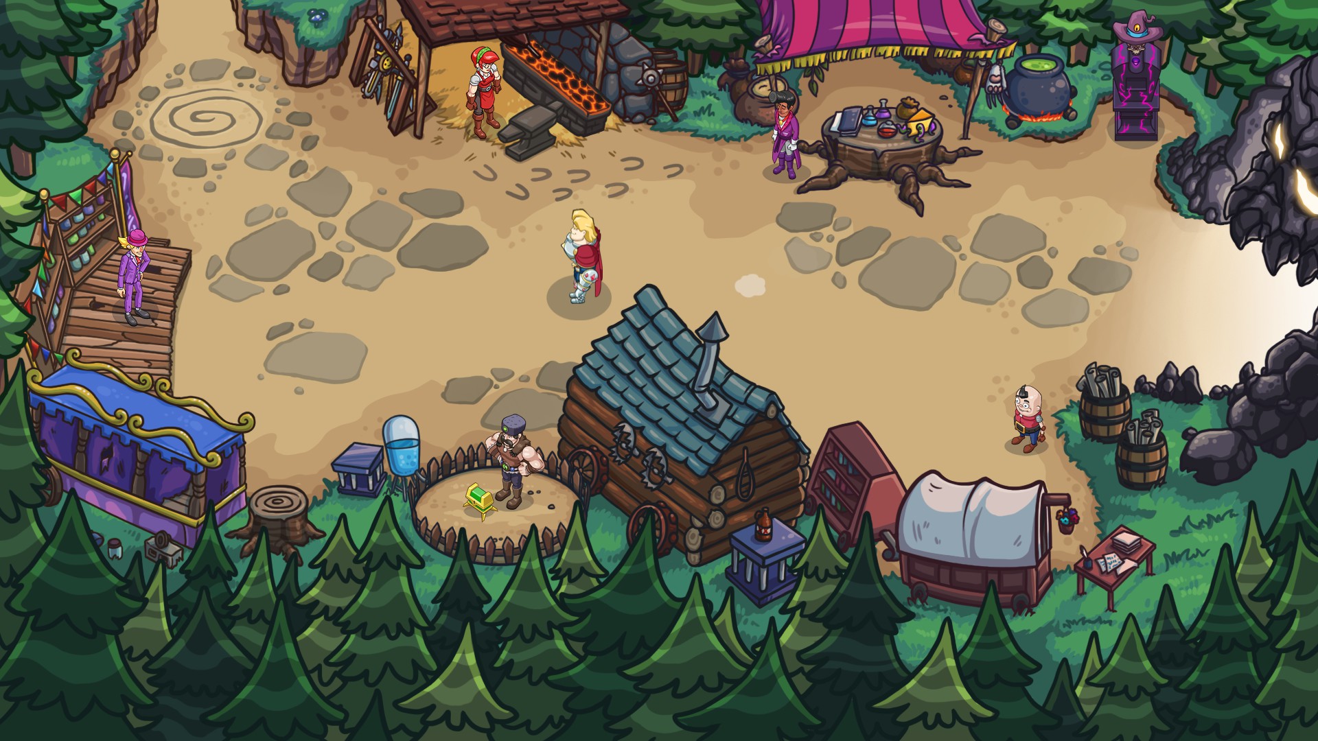 As legendary demon hunter Doug McGrave you stumble upon an old woman pleading you to help her village which is under threat from some demons in the neighboring hellhole, but since she isn’t offering any money and Doug is a dick he outright refuses to give them his aid, laughing in her face. In revenge the old woman reveals herself to be a witch and curses McGrave so that any riches he touches simply vanish, and to become weaker whenever he isn’t fighting monsters. The “village” you’ve been tasked with saving from the forces of evil actually amounts to a few buildings and a total of five people whose sole existence strangely seems to revolve around upgrading your gear and abilities. It’s the village you return to upon your inevitable death, and it’s also where you can spend the demon goop you gathered up in order to upgrade the damage you do with weapons and spells, your health, speed and more. Oddly enough the evil dungeon’s entrance is right next to the village. Who plans this stuff?