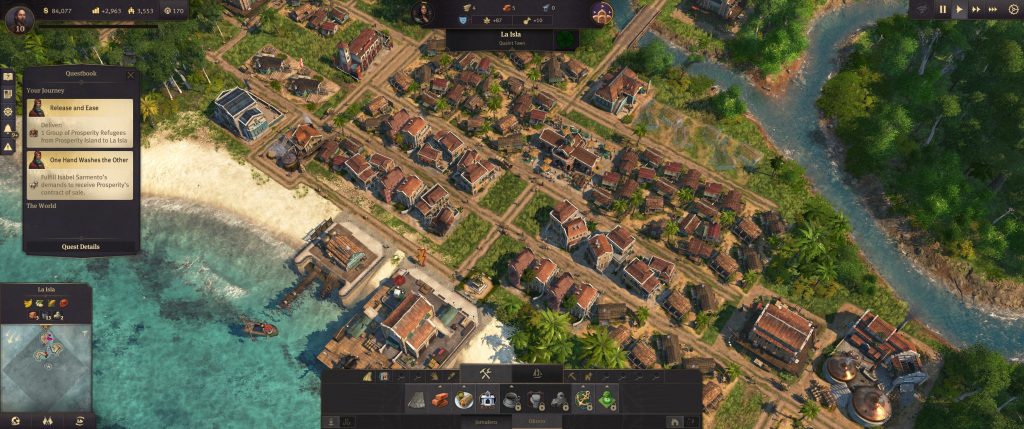 There’s a lengthy campaign in Anno 1800 that you can easily sink 10-30 hours into, depending on how quickly you blast through the objectives. It follows the story of two siblings whose father was accused of treason and found dead in his cell. Naturally events are not what they initially seem to be and thus begins a tale of family, betrayals and new allies. In the middle of it all you have to set up a whole new island in the name of the Queen, earn favor and try to figure everything out.