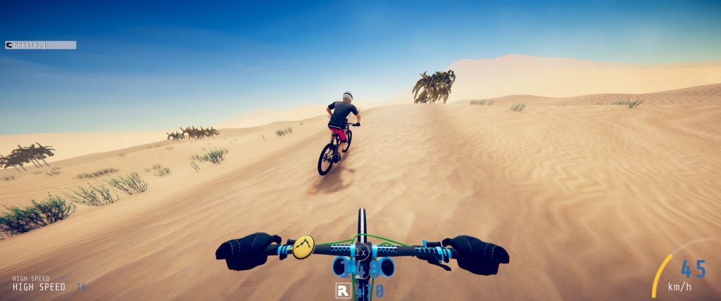 Meanwhile, in the regular singleplayer mode you can randomly encounter other players on tracks, something which the game indicates to you when you’re choosing where to go next. But these people won’t start the track at the same time as you necessarily, so there’s no real competition as such. You can also opt to go offline entirely if you don’t fancy having random strangers gaze judgingly as you plough into a sand dune.