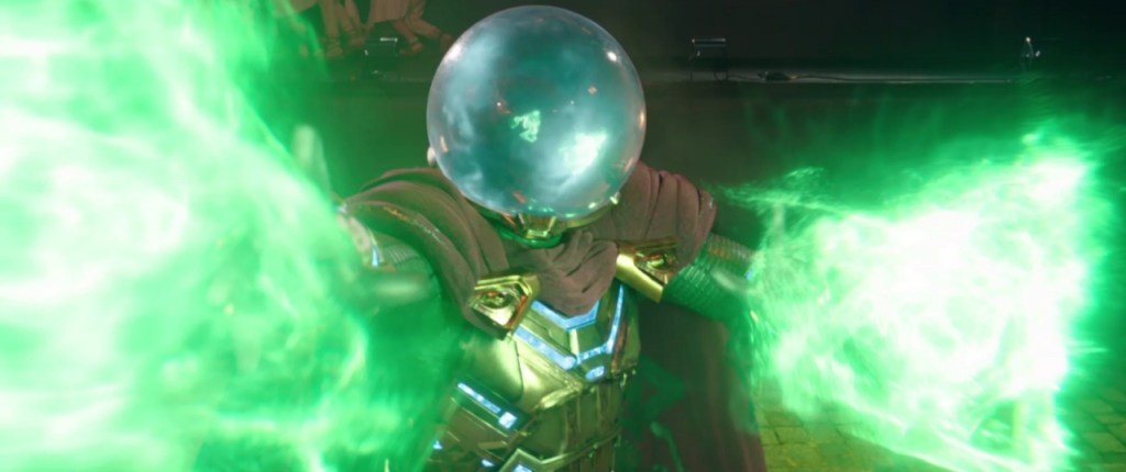 Once the secret is out I think it’s fair to say that they struggled to make Mysterio feel threatening. This was always going to be a bit of a problem since underneath the clever use of special effects Mysterio is just Quentin Beck, a perfectly normal human incapable of going up against Spider-Man in anything resembling a direct fight. To combat this in the film they give Mysterio an army of drones, but these are nothing more than a bunch of floating machines for Spidey to smash to pieces. It’s the same problem that many of the MCU films have: an army of generic things for the heroes to fight.