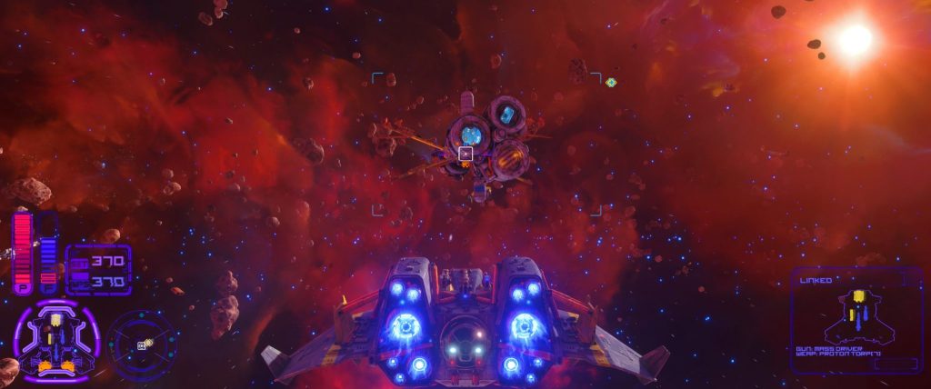 The basic handling is easy to grasp and a lot of fun. And you can properly take advantage of space’s lack of gravity by cutting the engines, spinning around and firing off your guns whilst flying backwards.