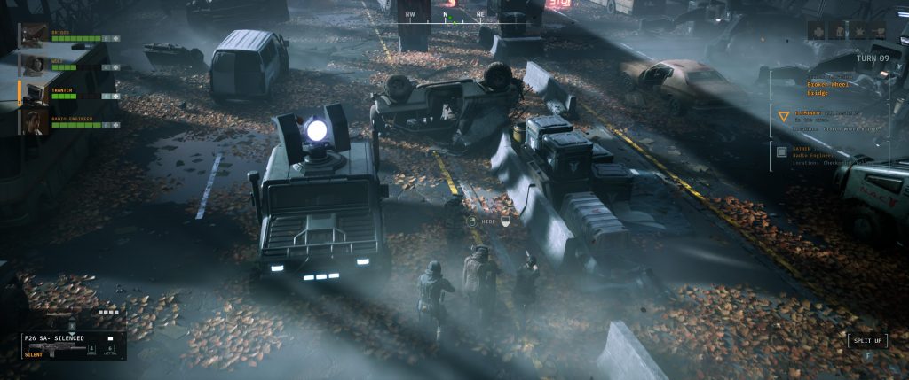When you aren’t in a fight the game is played in real-time with you controlling your squad using the WASD keys and the mouse. There’s a hefty dose of stealth at play here because you can click the left mouse button to go nearly invisible, reducing the radius at which enemy units can spot your squad. There’s a lot of benefits to staying under the radar, such as medkits, grenades and explosives that can be picked up and either saved for later or used to help you complete the mission. Plus there’re opportunities to do stuff like hack turrets.