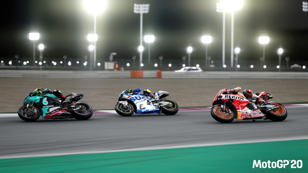Milestone claim to have upgraded their Neural A.I. for MotoGP ’20. The concept is that the A.I. will learn as they go and become faster, while still making mistakes so that they feel real. There are some weird things going on, like how they frequently take bizarre racing lines yet somehow seem to carry more speed than said line should allow. But putting that aside, the A.I. is reasonably challenging and takes good advantage if you stupidly leave the door open. They aren’t afraid to take a dive down your inside, sometimes getting a little cocky and causing themselves or both of you to crash in a tangle of limbs.