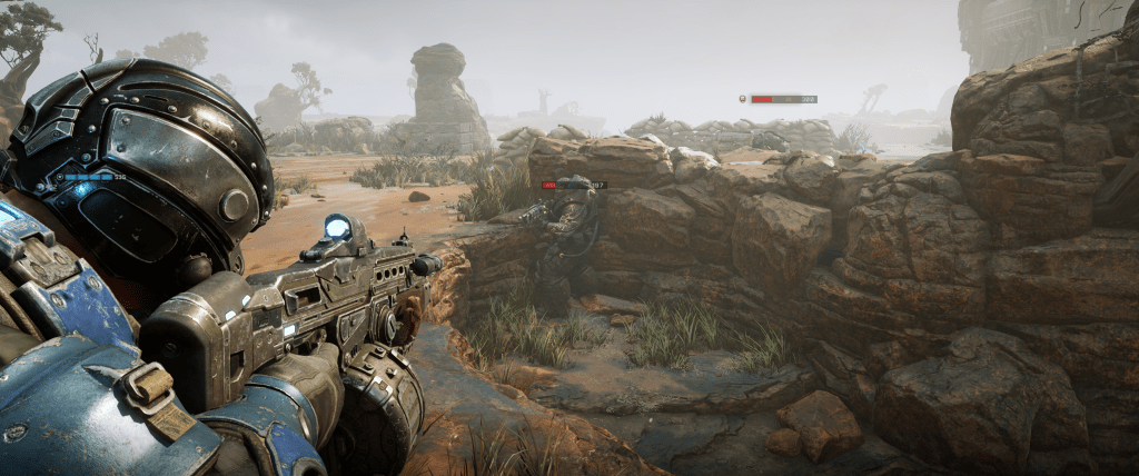 It’s a remarkably polished game, too. The only bugs I encountered were an instance of a dead body bouncing madly off a piece of scenery, and one of Gears doing a funny little dance for no reason. Apart from that, no problems.