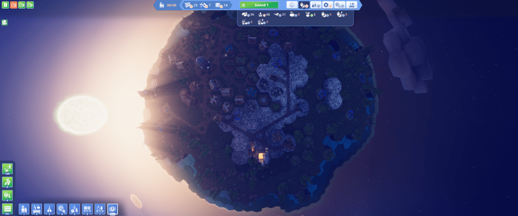 Visually there’s no technological boundaries being pushed in Before We Leave, but there is an adorable art style. Your little Peeps wobble around the map as they go about their work, and I especially like how the hexagonal clouds pop in and out of existence as you bring the camera in closer or move it farther out. Further into the game you get a tad more variety too, like snow environments. Hopefully we might get to see more biomes introduced in updates.