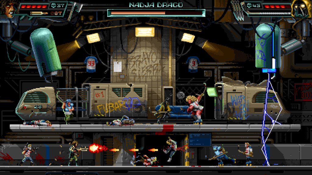 The key to any good fast-paced side-scrolling shooter is having controls that you can trust, and that’s exactly what Huntdown has. Precise and tight, there’s never a moment where you feel like the game has let you down. Considering how challenging Huntdown can be, it’s good to know that death was a result of your own mistakes. Plus, the developers have balanced out the raw challenge of the firefights with generous checkpoints, infinite lives and the fact that levels aren’t overly long, taking about 5-15 minutes to complete.