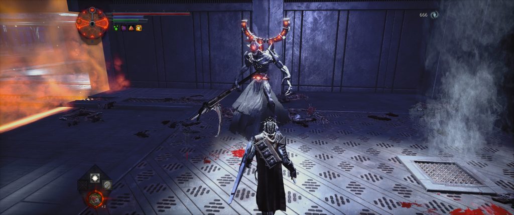 There doesn’t seem to be any lore or explanations behind the bosses, either, so it’s like they’ve just been randomly dropped from the sky. Who is this big fat thing and why is it standing at a generic junction for no apparent reason? No idea. And Hellpoint has a horrible habit of having big bosses appear as smaller, regular enemies which is just wrong. What very little personality the bosses have is stripped away when you see they roaming the corridors in much smaller form. Are they all going out and having babies and then sending them out to patrol this vast space station?