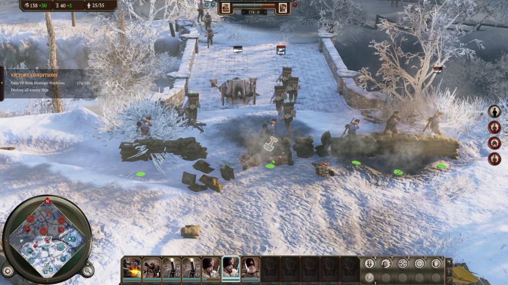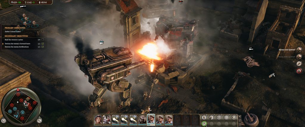 There is one think that irks me about the moment to moment gameplay: there’s a palpable delay between issuing orders and units reacting. In the large mechs this makes sense thematically, but in the case of infantry, it’s often frustrating. It’s worse when employing something like grenades because they take several seconds to actually throw. You can’t cancel an ability, either, so it’s not unusual for an enemy squad to have wandered off before your own squad get’s around to tossing a grenade.