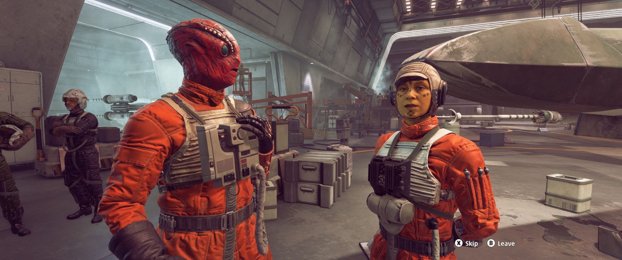 I did at least enjoy a couple of the squadmates you fly with. On the Empire side, Shen is a pilot who has been shot down multiple times over his long career and is basically held together by cybernetics. He never removes his helmet now, so there’s a fun element of mystery and badassery to this dude. Over in the Republic’s hangar, Frisk is an intriguing rogue who ended up joining the Republic after a death mark was placed on him. He likes to gamble and has a light-hearted edge that contrasts the rest of the game nicely.