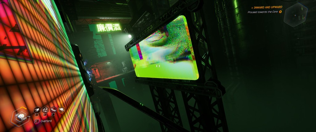 Talking about special abilities brings me to the oddest part of Ghostrunner. You see, as you battle up the tower level by level and die a billion times you’ll acquire special chips that you can slot into your brain. These will do a bunch of things like make dash recharge quicker or make Tempest strike a wider area. While you can’t drastically alter how you’ll play Ghostrunner, there’s a bit of room for tweaking your style. Weirdly though, the inside of the Ghostrunner’s skull closely resembles a game of Tetris. Each chip is a different shape, and you have to slot them into the space available. The more empty squares you leave, the faster your passive recharge rate. But the more you fill, the more bonuses you get. It’s a…strange choice of system, especially in a game about constantly moving. Stopping to rotate blocks feels at odds with everything else. Honestly, I could have done without the whole Tetris brain thing.