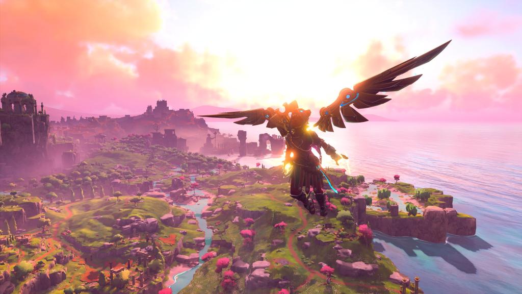I love how the world is unabashedly a video game world. Let me explain that one: a lot of open-worlds want to look and feel real to immerse you into the action. It’s an admirable goal and we’ve seen lots of amazing developers craft intricate worlds that seek to immerse you through things like crowds of NPCs and realistic graphics They are worlds that just so happen to have video games take place in them But Immortals: Fenyx Rising eschews that and takes delight in the fact that its world is designed first and foremost for a game. It’s a lush landscape that’s peppered with inexplicable puzzles and chests that have no logical reason for existing. It’s like someone ate a puzzle-cookie and couldn’t be bothered to clean up the puzzle-crumbs. There’s no time wasted on useless NPCs who have lives to live or on trying to justify why there’s a magical laser puzzle right there. Nor is it some gigantic world where the size becomes so vast and cumbersome that its boring. Too often open-worlds are just space and nothing more. Big swathes of space that exist for no other than reason to be huge and to make travelling a pain in the ass. The world of Fenyx Rising is big but not overly big, meaning you can glance around and see a dozen different places to explore. The hills and dips of the land are strategically placed so that you can always be spotting something. And when you climb up up the world stretches away into the distance, and you can spy dozens upon dozens of things to check out. It’s an addictive place to spend time in because there’s always something just over the hill to do.