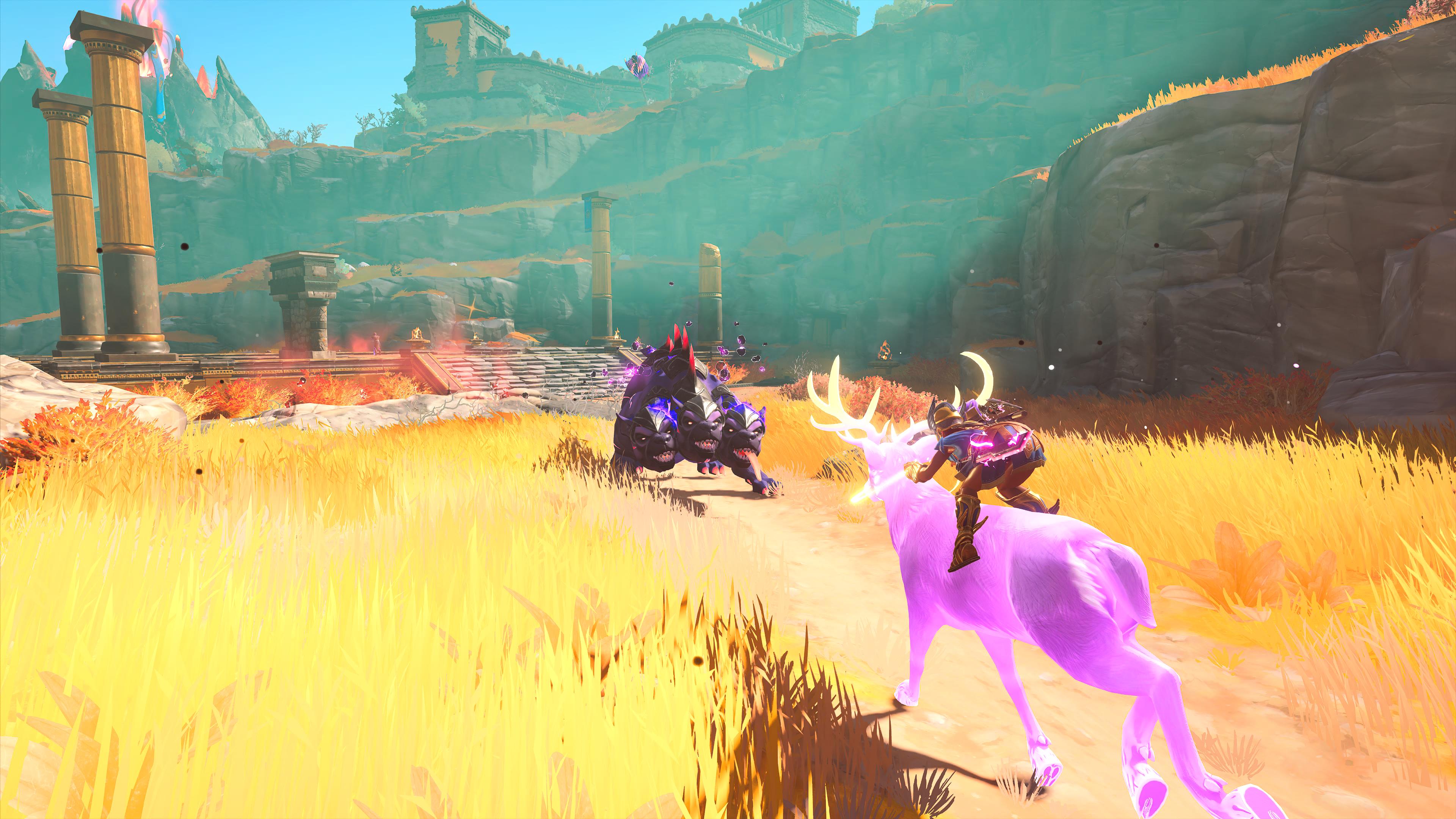 The Golden Isle is a wonderous place filled with colour, puzzles, temples and towering statues. It’s split into different zones, each reflecting the God that lives there. Aphrodite’s Valley of Spring is full of lush gardens, beautiful greenery and an elegant palace devoted to the Goddess of Love and Pleasure. On the other end of the spectrum, the land of Hephaistos is dominated by a massive forge which you’ll spend an entire questline trying to restart. Each area of the Golden Isle is visually distinctive, a little world in itself. And those visuals…ooooooooooh, baby! There’s a sort of classic Disney vibe to the colours and designs at work in Immortals: Fenyx Rising. Almost everywhere you go there’s something lovely to look at like a waterfall that leads into a valley, a bear sitting on a cliff edge or an epic vista that stretches out before you.