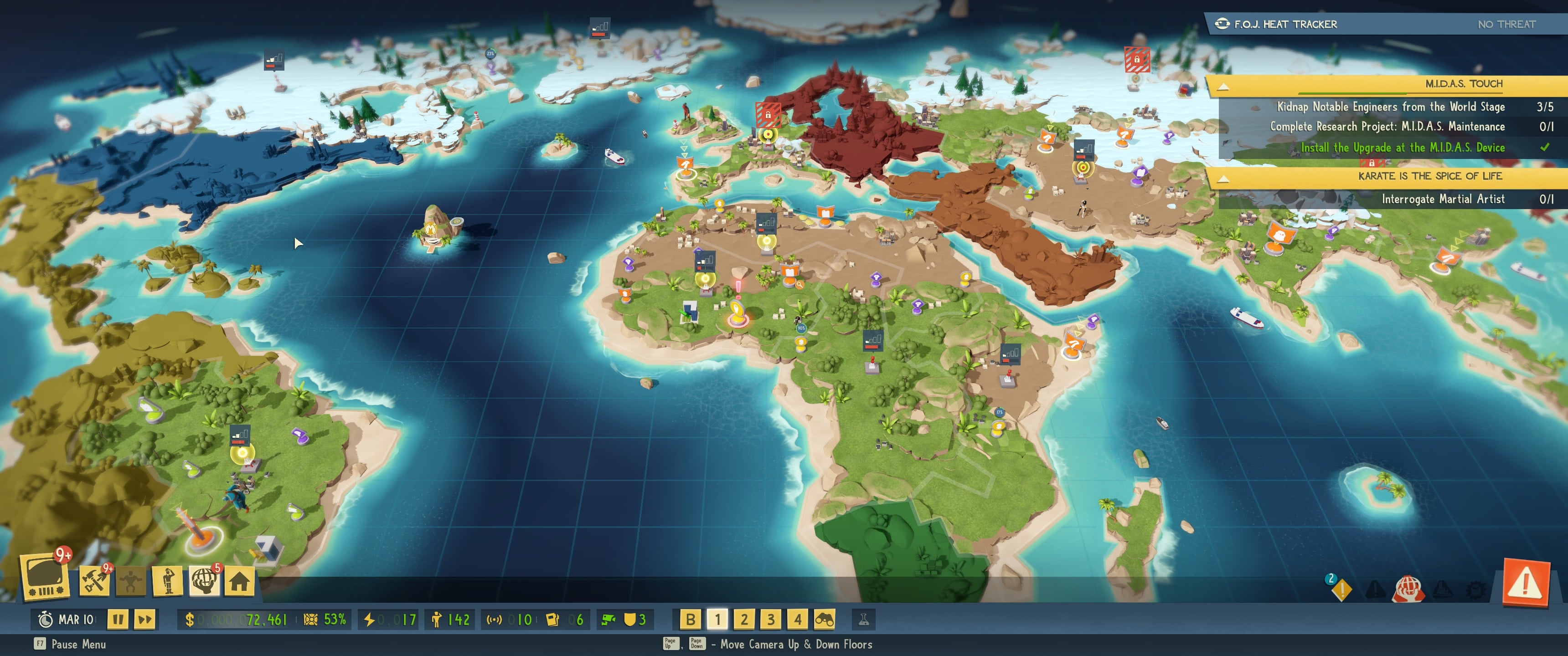 The lack of information is particularly annoying on the World Stage where you can’t quickly tell what regions have active schemes. And trying to find specific mission icons is a right pain in the backside.