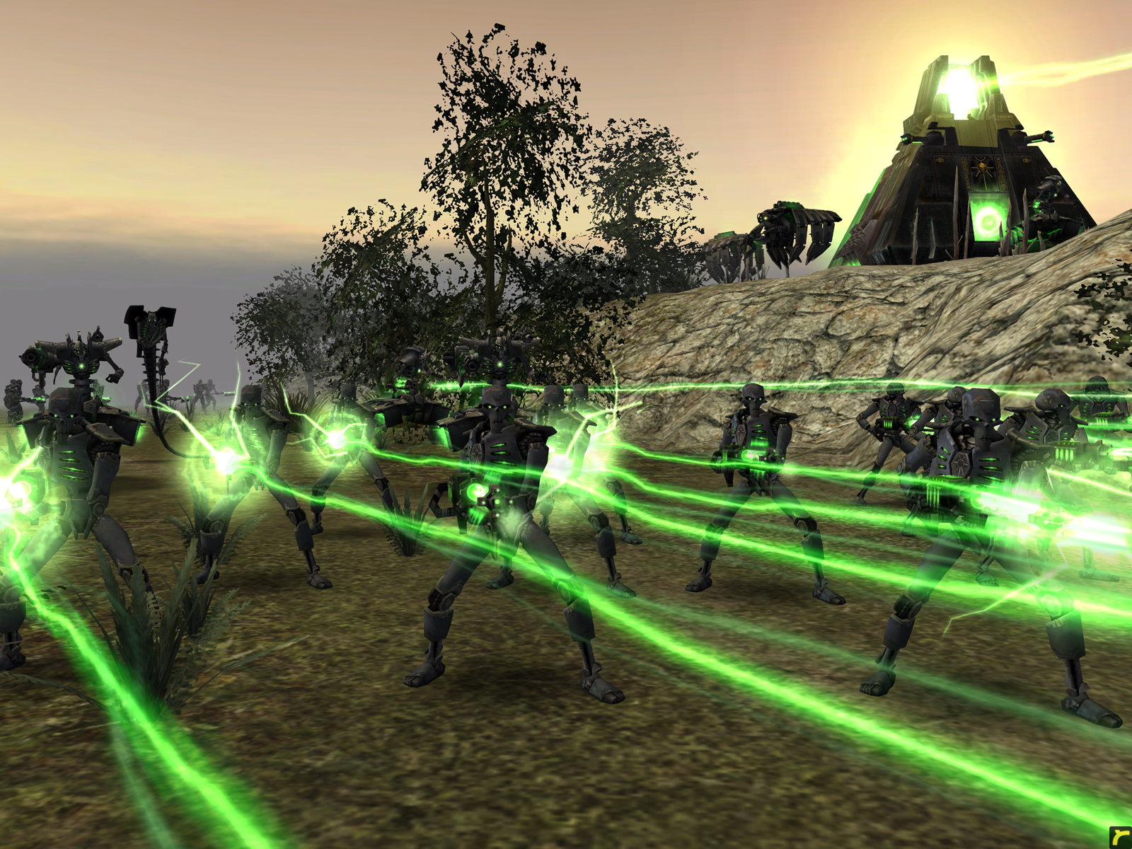 The Eldar are the least capable when it comes to a straight punch-up, but that’s because they prefer hit and run tactics. They’re fast and can build special Webway gets that let them teleport around the map. They’re the faction I play the least, but a skilled commander can be devastating.