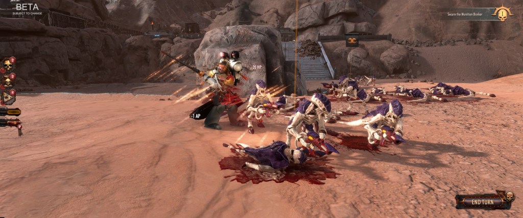 I won’t lie to you, dearly beloved reader: after 5 missions I didn’t have a clue what was going on. To the game’s credit, each mission has a little panel of lore on the left to help educate naive players like me, and there’s plenty of voiced dialogue. However, the melodramatic speech quickly began to wash over me, and each of the main characters lacked a personality that grabbed me. Only the Techmarine that shows up a bit later has a bit of character in the form of some sass that makes them stand out from the crowd. Perhaps a Warhammer enthusiast might glean more from the plot, but it wasn’t doing it for me.