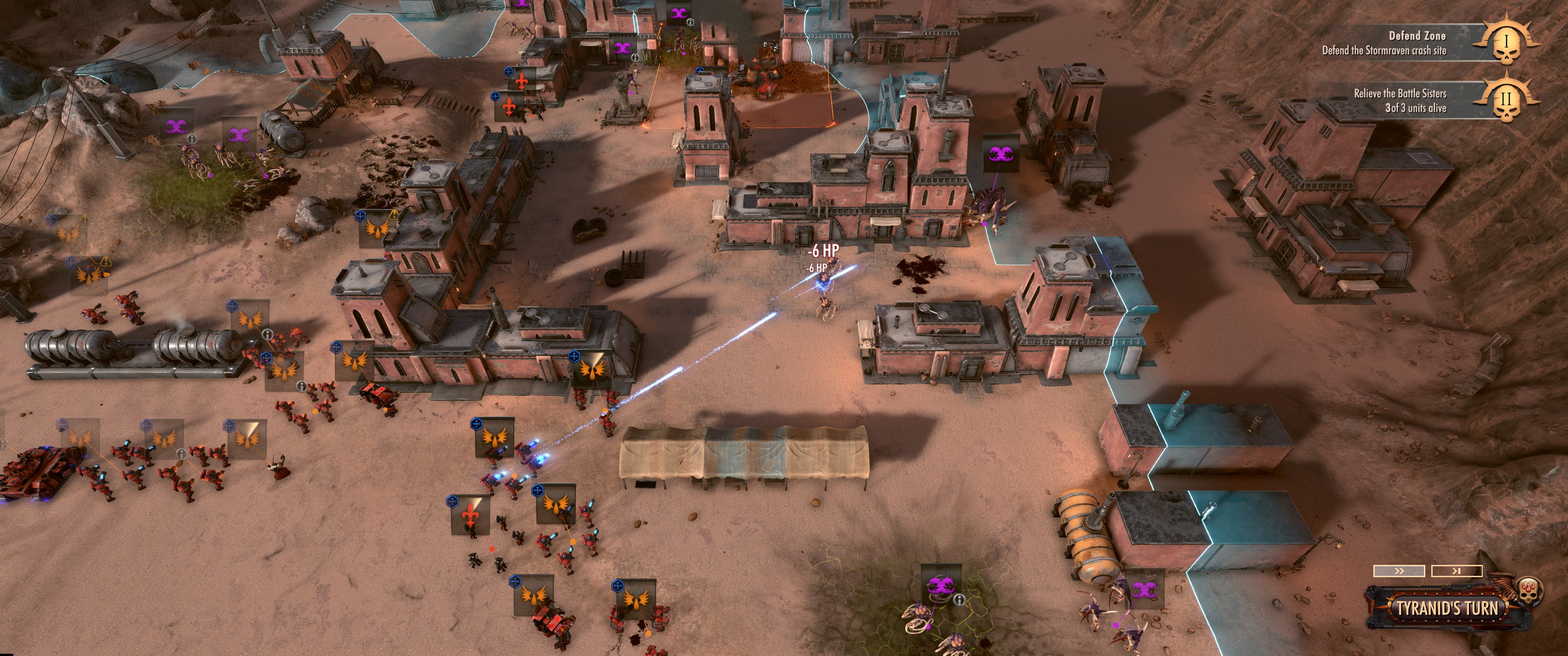 There’s a very real danger that Black Lab’s new Warhammer 40,000: Battlesector could get lost in the flood of Warhammer games being spewed forth from every corner like a liquid plague of mediocrity. As Games Workshop hands out the license like a supermarket handing out free biscuit samples we’ve had to deal with a hugely inconsistent deluge of quality, and so absolute gems like Battlesector can get easily drowned in the tide. But Battlesector deserves to fight to the surface because it’s a great turn-based tactical game with some fun ideas.
