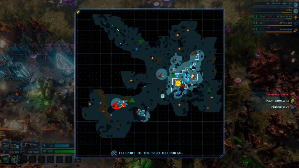 Shockingly, the local wildlife does not appreciate your plans to turn their home into the next McDonals Fly-Through and theme park and will attack on sight. Stuck on a planet infested with millions of creatures that don’t want you there means you spend just as much time gunning down the wildlife as you do building a base. The various types of defensive towers can help thin some of the impressively humungous hordes that will frequently come knocking, but throughout the game, you and your heavily armed mech suit remain the most powerful force for dealing with them. Luckily, portals are cheap to make so you can litter the map with fast-travel points, letting you jump back and forth when needed to deal with bigger attacks.
