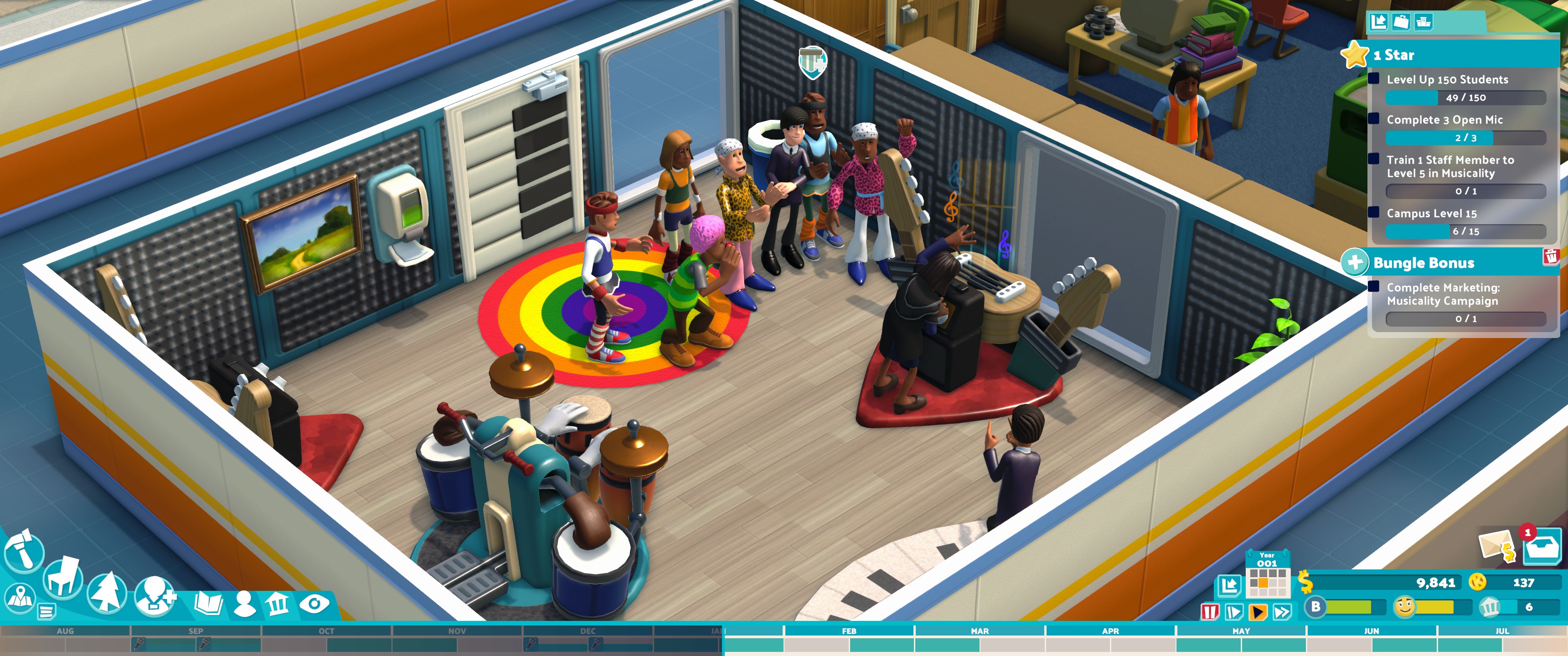 Earning a single star in each level of the campaign is a breeze, largely because the game treats that first star as more of a tutorial for that campus’ themes and mechanics. Once you begin chasing the second and third stars on each level the experience becomes much more challenging and interesting, pushing you to drill down deeper into menus that you may never have ventured into before. That might include altering tuition fees, fiddling with the student intake and application rates, assigning specific teachers to rooms, being more hands-on with staff management, sending students to private tuition or even booting them out if their grades aren’t high enough and learning how to maximise the space available. It can get hectic at times, but never to the point of becoming frustrating or unparsable.