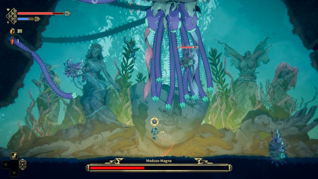 If the combat and chip system sounds somewhat familiar, well, that’s because they are. Pronty does borrow quite heavily from Ori & The Will of the Wisp and from Hollow Knight, but I view that as a compliment to both of those games and Pronty’s underwater theme and visual style help set it apart from its inspirations.