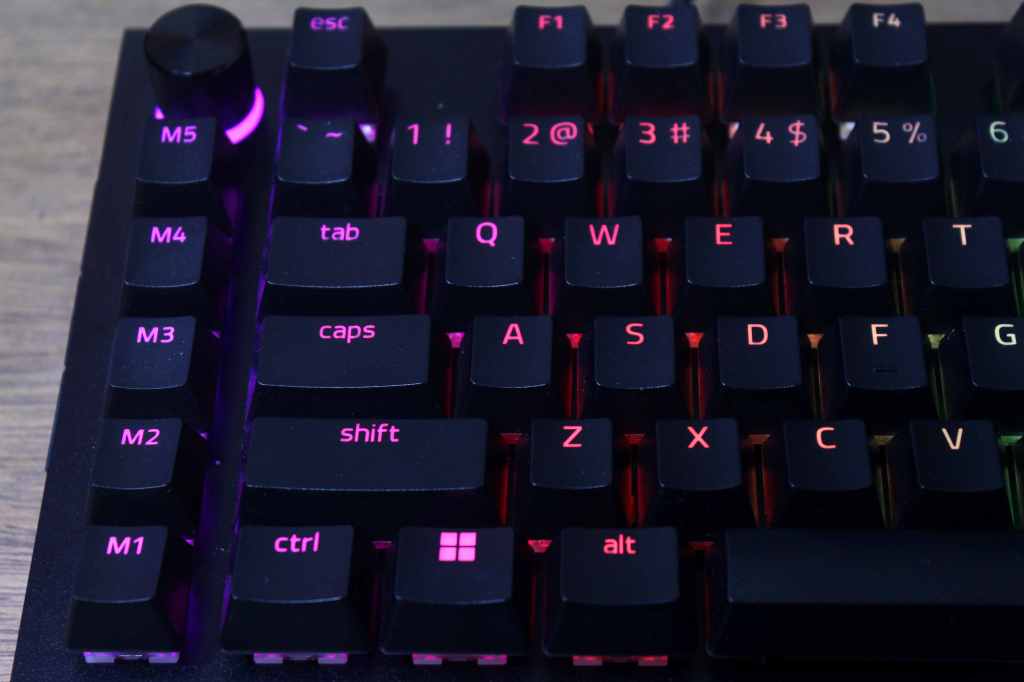 There are three more buttons hidden away on the left of the keyboard that are, by default, programmed to take a screenshot, open up the Xbox app and bring up the task view. But like almost all the other keys on the BlackWidow they can be changed using the software to do whatever you’d like. Their positioning on the keyboard is a little dubious, though, because they sit exactly where your hand falls whenever you go to shift the BlackWidow V4 Pro around. Since I swap between gaming and long typing sessions constantly, I ended up hitting the buttons by accident a lot. I got used to it quickly, though. For gaming, they are pretty much useless as their location doesn’t make them easy to reach in a hurry. For productivity and working they could be quite useful, though.