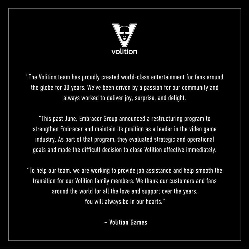 The closure will result in around 340 people losing their jobs, though Volition stated that they are working to provide job assistance. Hopefully, many of Volition’s staff may be able to pick up jobs elsewhere in Embracer’s vast empire.