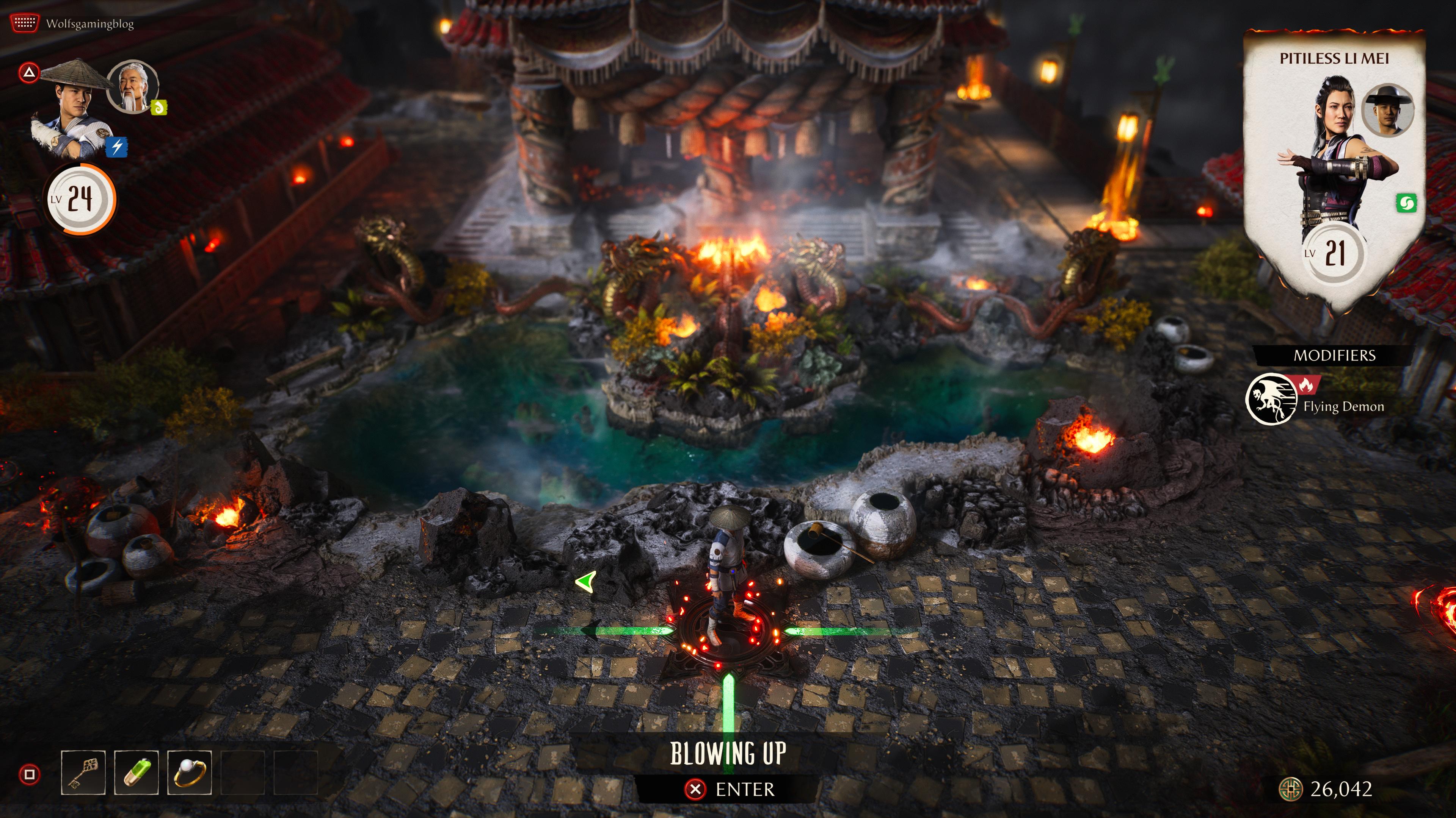 Invasion mode is the big new headlining feature and replaces Mortal Kombat 11’s Living Towers as the live-service element of the game. Early previews described this mode as being akin to a boardgame but with more decapitations and that holds up. Essentially, you’re dropped into a 3D environment and move from node to node completing objectives. Mostly those objectives are extremely quick one-round fights but might also include a Test Your Might, boss battle, small tower or even dodging projectiles. Along the way you’ll level up (grinding is a viable strategy to help beat bosses) collect keys to open doors and use a mix of artefacts, relics and consumables to help kick the shit out of everyone else.