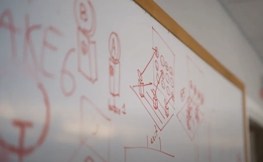 As spotted by the eagle eyes of JigglesBunny on ResetEra, a whiteboard is shown during the presentation. There are a few things on the board that seem to be quick doodles of puzzles, but the most interesting thing is a Quake logo, along with what seems to be part of a word ending in “..AKE6.”