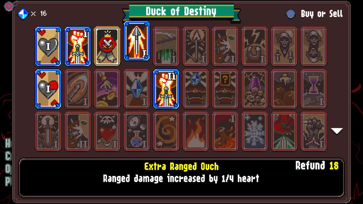 Still, camp gives you three random chance cards to choose from that provide little boosts until you die. Plus, there’s an NPC who will have lost a valuable item you can return for bonus gold, and the Gem shop where you purchase permanent upgrades. And, of course, the Ferryman is waiting, in case you managed to gather up enough gold to pay the toll.