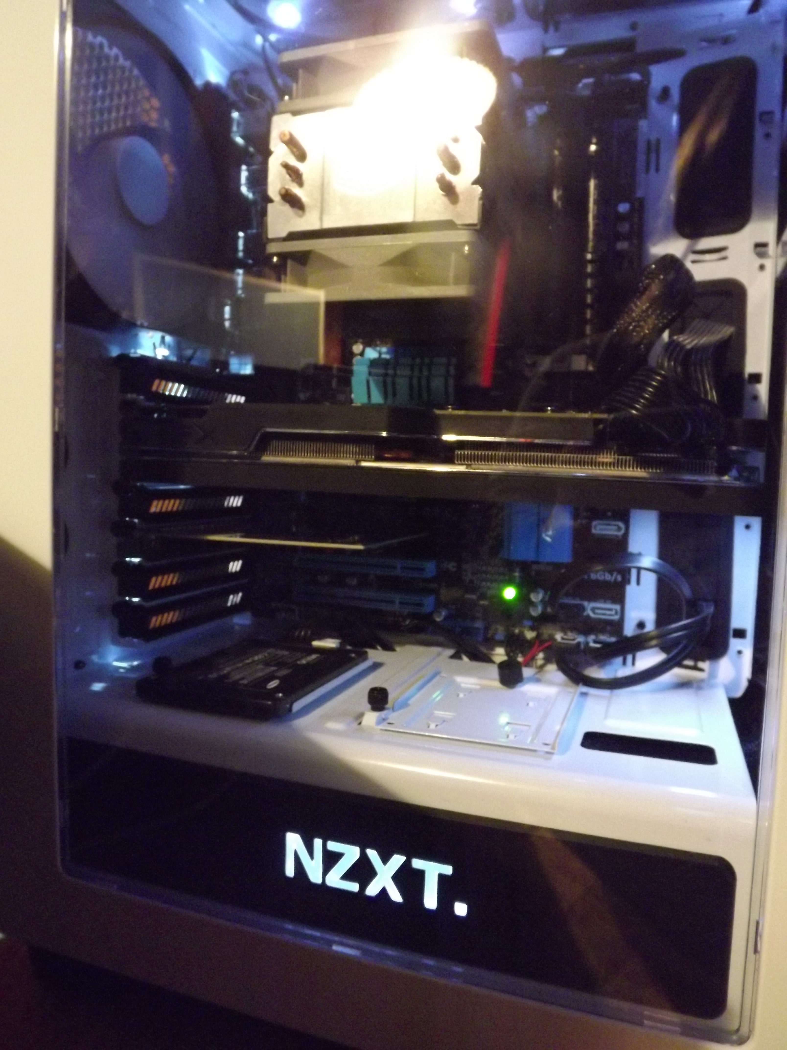 Below the Ram and processor we find my pride and joy, an XFX Double-D R9 290 graphics card with 4GB of VRAM. It’s overkill for the 1080p monitor I use, but the reasoning is simple: more games are starting to make use of 4GB VRAM even at this resolution, and so as we move forward over the next year or two the R9 290 should hopefully continue to perform very, very well. As for right now it’s absolutely love, and delivers brilliant visuals. After years of having to carefully tweak settings it’s nice to be able to turn almost everything up to max and just play. Sure, there are lots of journalists and Youtubers with multiple cards, but I’m not rich, dammit.